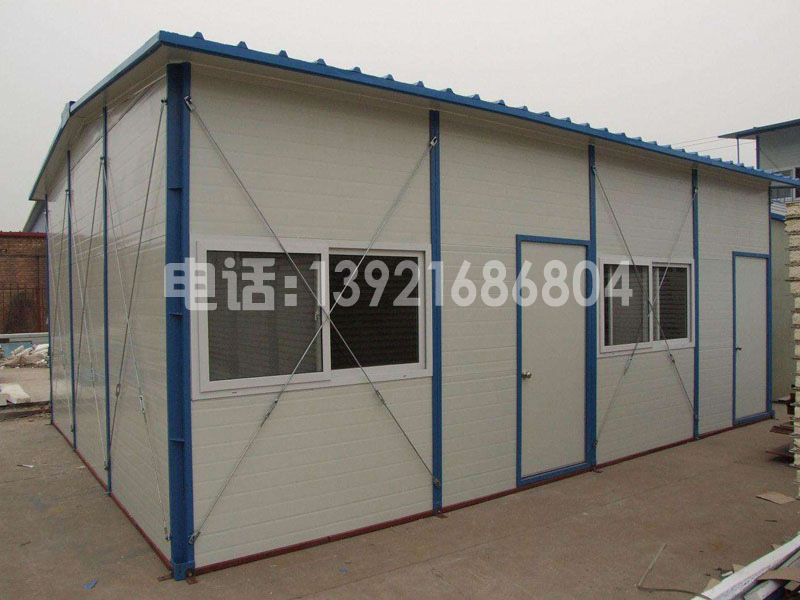活動板房是一種以輕鋼為骨架,以夾芯板為圍護材料,以標準模數(shù)系列進行空間合,構(gòu)件采用螺栓連接,全新概念的環(huán)保經(jīng)濟型活動板房屋?煞奖憧旖莸剡M行組裝和拆卸,實現(xiàn)了臨時建筑的通用標準化,樹立了環(huán)保節(jié)能、快捷高效的建筑理念,使臨時房屋進入了一個系列化開發(fā)、集成化生產(chǎn)、配套化供應(yīng)、可庫存和可多次周轉(zhuǎn)使用的定型產(chǎn)品領(lǐng)域。
